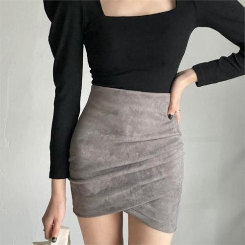 [다잇템]여자 잔주름 하이웨이스트 슬림 미니스커트 (8111908A)