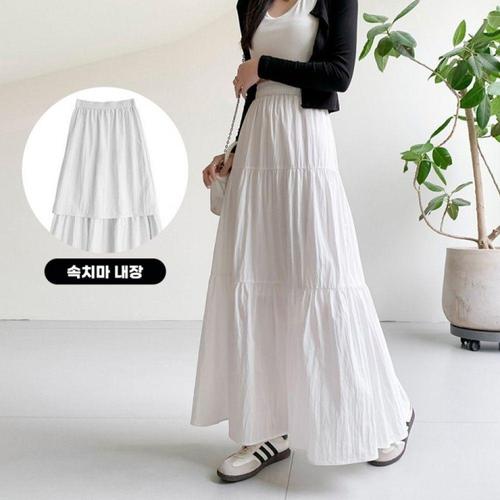 [오너클랜]인기상품 하이웨스트 밴딩 롱치마 셔링 디테일 케이크 스커트 [WFLL847_260304]