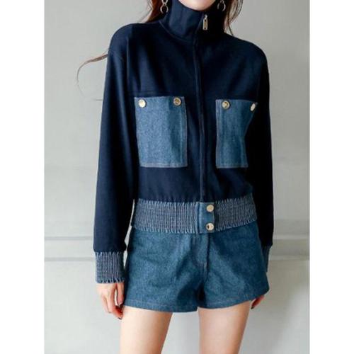 [탑온탑]유니크 하이넥 믹스매치 집업점퍼