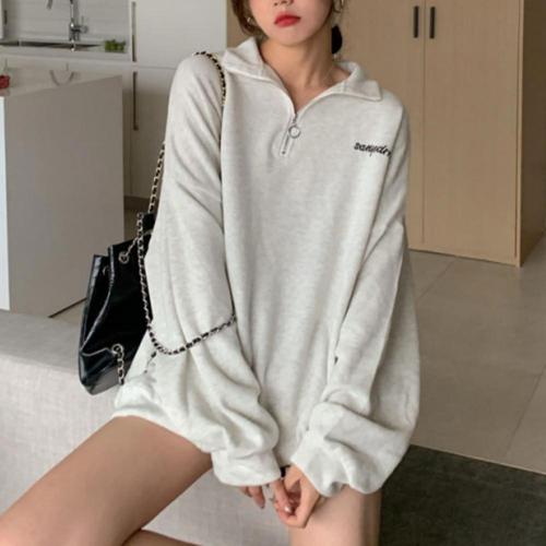 [오너클랜]인기상품 여성 루즈핏 하프집업 반집업 레터링 오버핏 카라 맨투맨 [WFM3MYZ_260213]