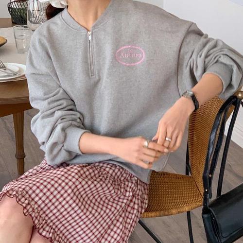[다잇템]여자 SS 크로쉐 필기체 하프집업 박시핏 맨투맨 (45973739)