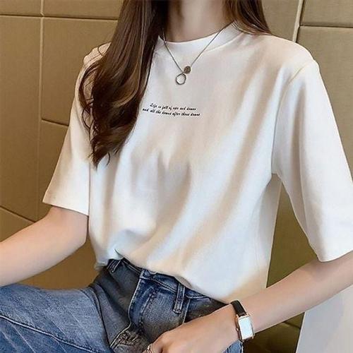 [에이치플러스몰]뒷면 인기 레터링 티셔츠 여성 감성 학생 반팔티 여름