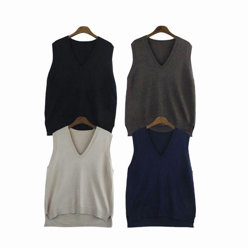 지지블랙 네이션 촤르륵 무지 박시 오버핏 니트 브이넥 조끼 베스트 레이어드 ZZBVT003