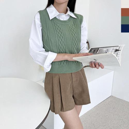 [다잇템]여자 꽈배기 4컬러 학생 프레피룩 니트 조끼