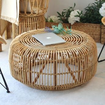 라탄 거실 좌식 쇼파 티 커피 낮은 원목 원형 테이블