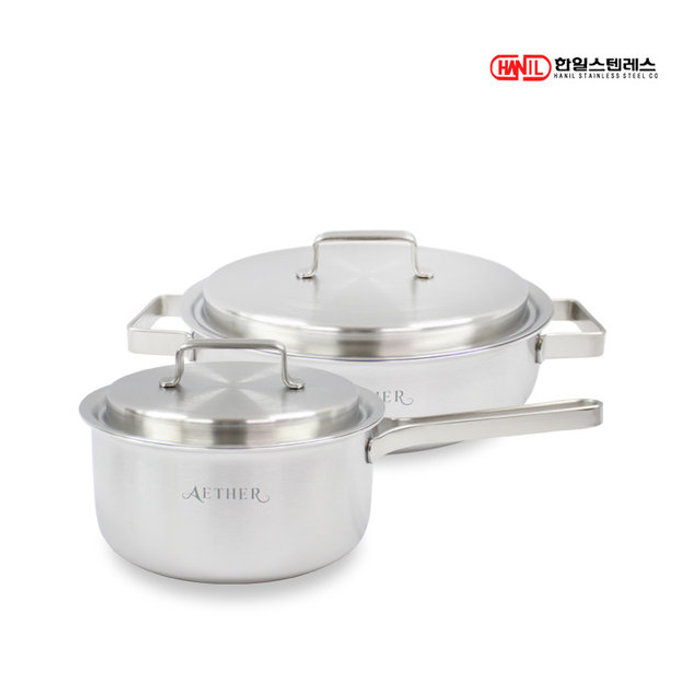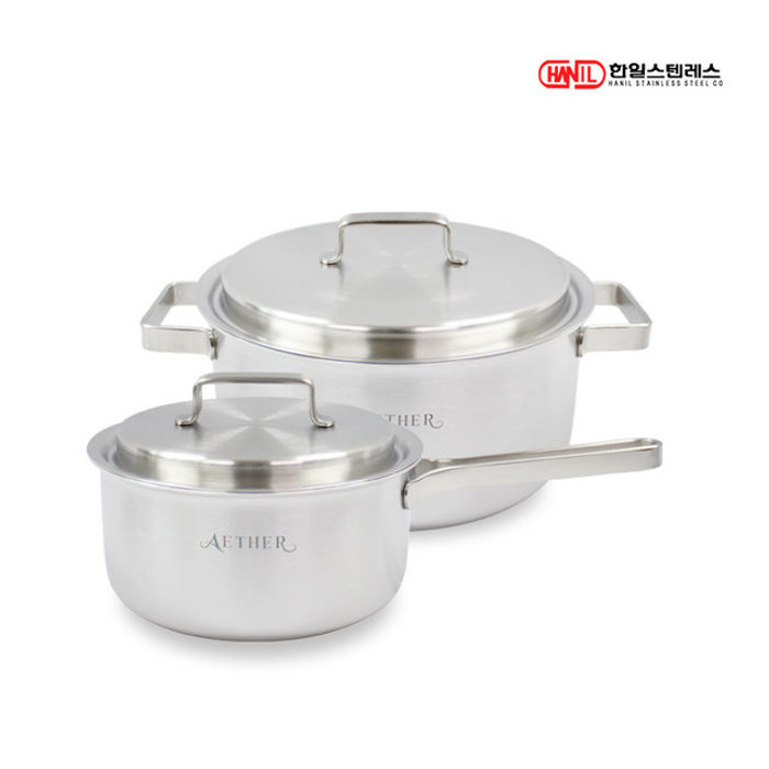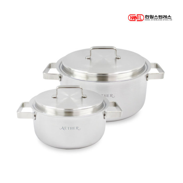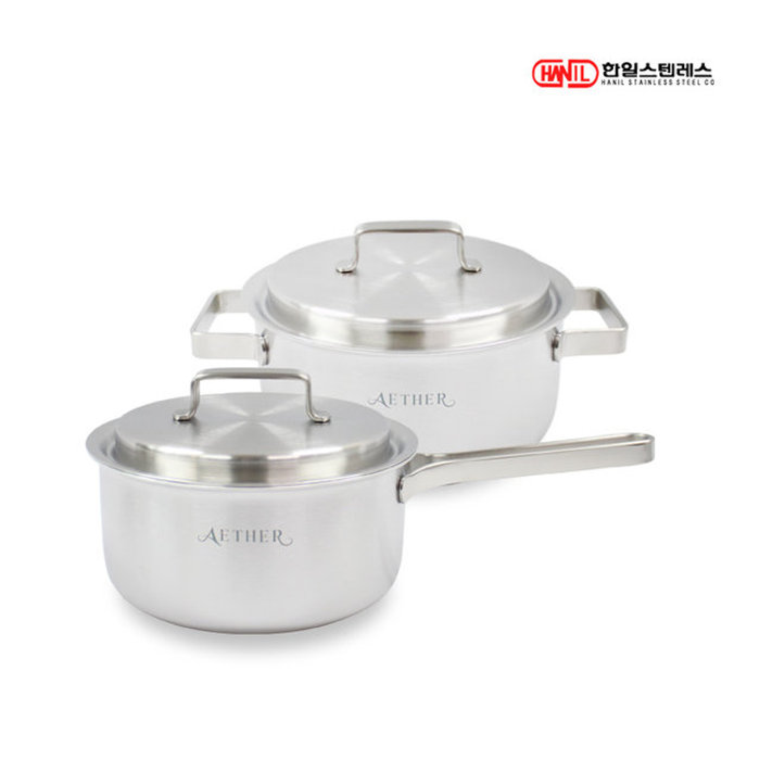 한일스텐레스 한일STS 에테르 통5중 스텐레스304 IH 인덕션가능 무연마제 냄비세트 2종A(편18+양20)