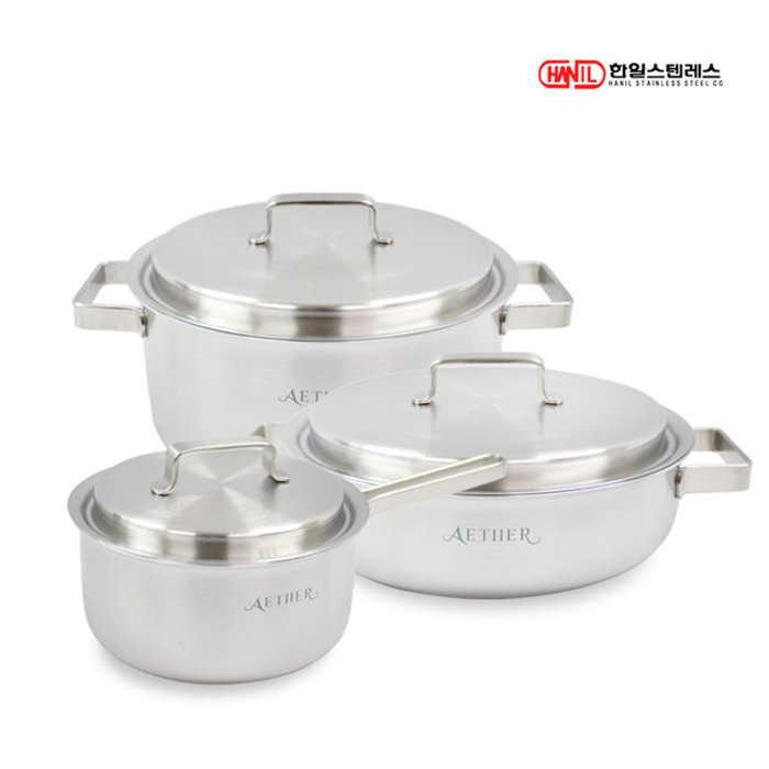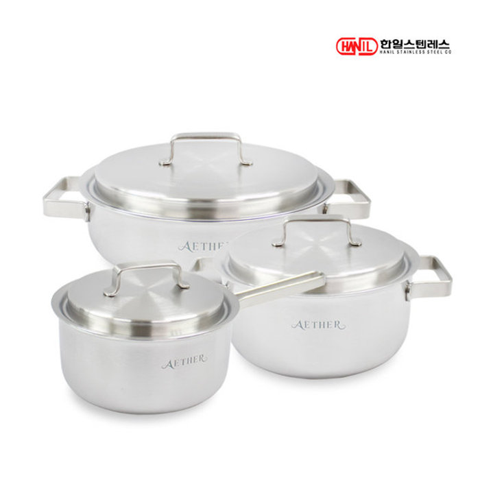 한일스텐레스 한일STS 에테르 통5중 스텐레스304 IH 인덕션가능 무연마제 냄비세트 3종B(편18+양20+전24)