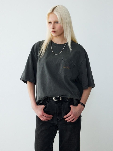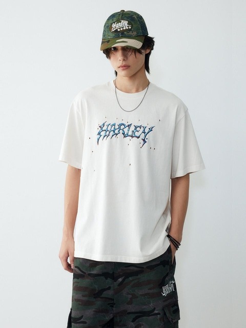 1+1 페튼 할리 레터링 프린팅 오버핏 반팔티