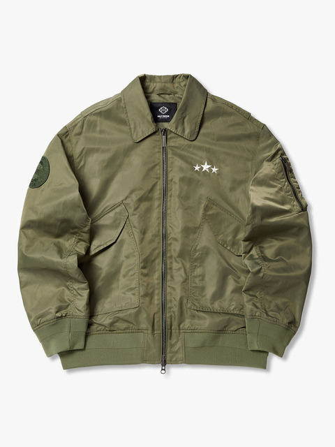 레더 바시티 봄버 재킷