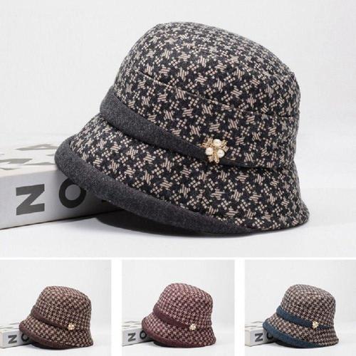 브로치 여성 클로슈 중년 버킷햇 할머니 모자 털 WFLZOBZ