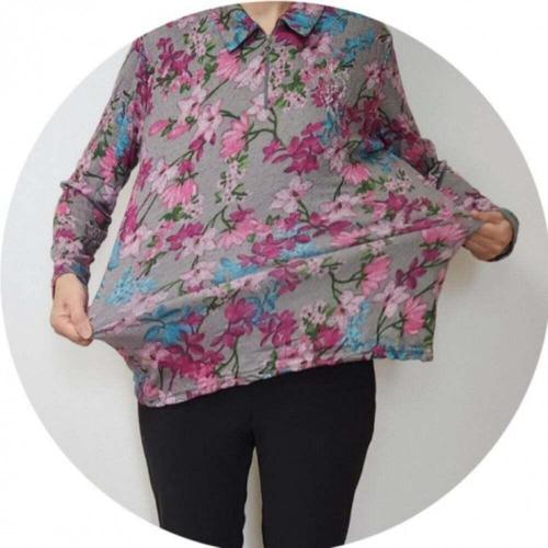 [셀럽하우스]꽃 VIDF2180 기모 지퍼 카라티 할머니 평상복 플라워 포인트티