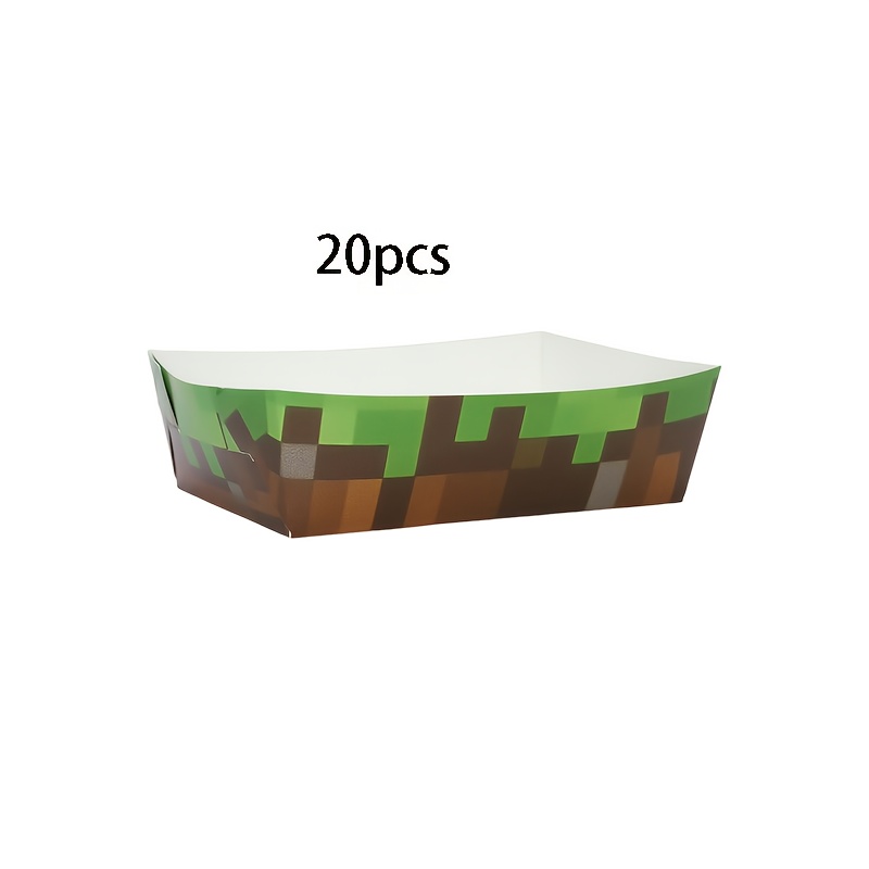 TEMU 10개/20개/50개 픽셀 종이 보트 트레이 녹색 및 갈색 비디오 게임 생일 종이 스낵 팝콘 신선한 감자튀김 보트 접시 용기 서빙 트레이 보트 볼 스낵 감자튀김 팝콘 BBQ 샌드위치 핫도그 디저트 타코 나초