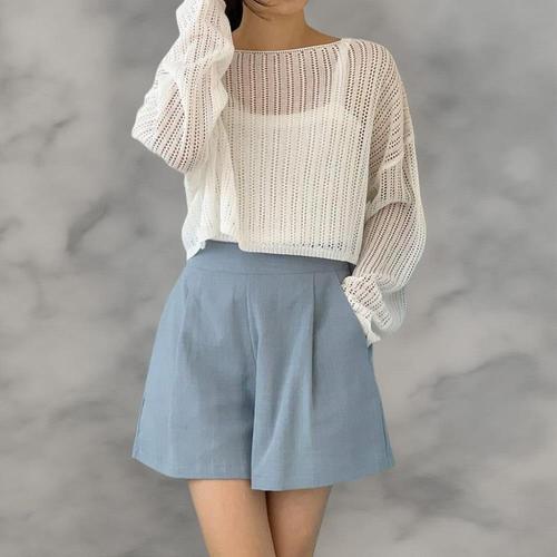 [옷자락]여성 단색 린넨 코튼 허리끈 밴딩 숏팬츠