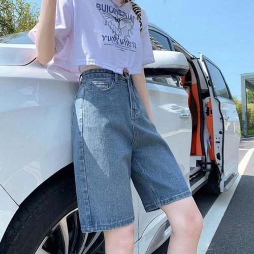 레트로 롤업 밑단 딥 블루 데님 반바지 여성 여름 섹시한 저층 엉덩이 덮음 핫 바지 American Distressed Washed Jean Short