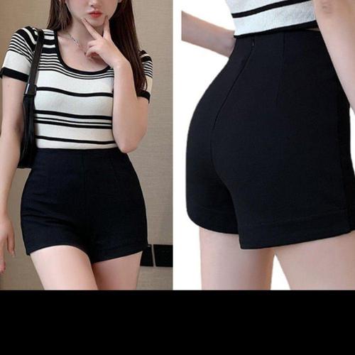 여성 반바지 Mooyufon 블랙 반바지 여성 하라주쿠 우아함 하이 웨이스트 반바지 라인 슬림 캐주얼 핫 소녀 스트레이트 바지 섹시한