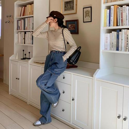 [다잇템][다잇템] 여자 건빵 항공바지 통와이드 비죠 허리조절 청바지_14938467_588872