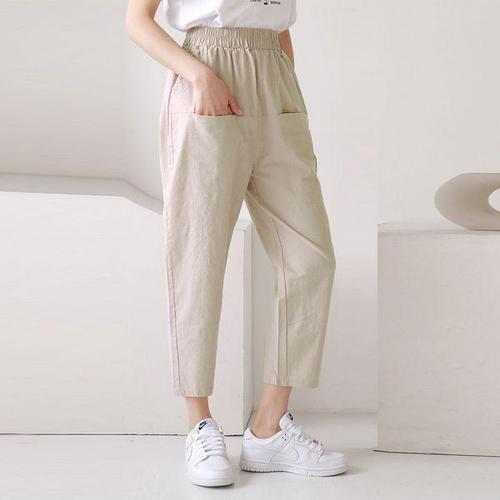 [유야]5컬러 린넨 앞포켓 밴딩 배기 바지 항아리 팬츠 -PN0140H- 빅사이즈 루즈핏 여성 여름