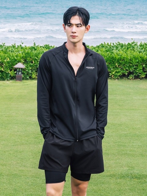 [헤링본] [SET] 남성 래쉬가드세트 레귤러핏 집업 긴팔 & 투인원 스윔팬츠 / RF338 AC902