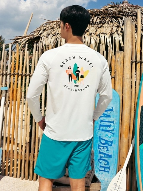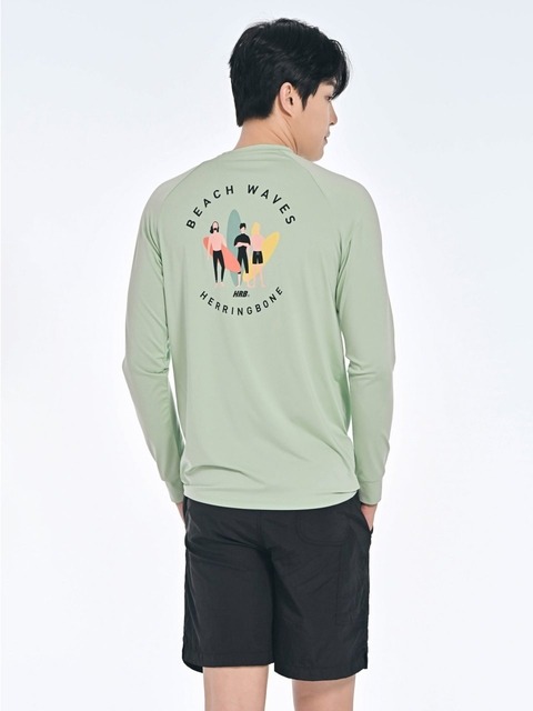 헤링본 남자 래쉬가드 긴팔 티셔츠 수영복 빅사이즈 루즈핏 비치웨어 해변 바캉스룩 상의 RF342M
