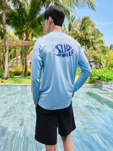 [헤링본] [SET] 남성 루즈핏 롱 슬리브 래쉬가드&스포티 스판 스윔팬츠 / RH364 AH325