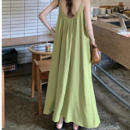 [오너클랜]인기상품 해변 롱 드레스 그린 끈나시 바닷가 휴양지 원피스 [WFLL7CB_260304]