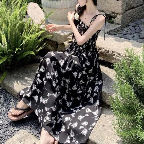 [오너클랜]인기상품 여름용 플라워 슬리브리스 밴딩 A라인 롱 드레스 해변 캐주얼 원피스 [WFLL7O7_260304]