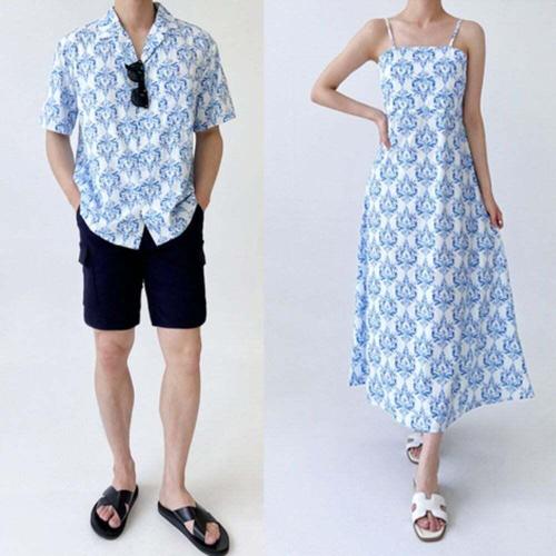 [셀럽하우스]커플 WOWW6782 에스닉 비치 웨어 해변룩 신혼 원피스 커플룩
