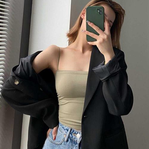 [셀럽하우스]여성 OUHT1237 크롭 무지 배꼽 끈나시 해외 여행룩 코디 나시