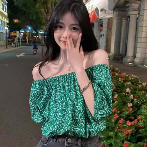 [셀러허브_여성트랜드패션]해외 반팔 여름 오프숄더 코디 여행 블라우스 꽃무늬