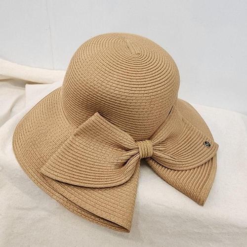 여자 해외여행 왕골 휴양지 밀집모자 빅리본 버킷햇 WFLZ6JQ