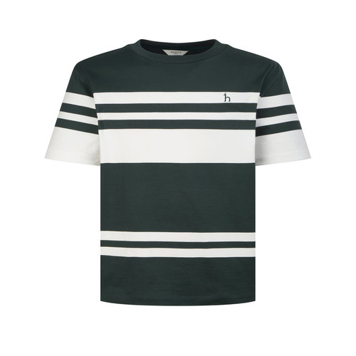 헤지스 골프 [ONLINE EXCLUSIVE] 그린 남성 스트라이프 면 반팔 티셔츠 (HUTS6B903E3)