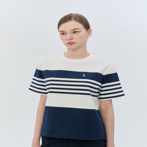 헤지스 골프 여성 [ONLINE EXCLUSIVE] 네이비 여성 스트라이프 라운드넥 반팔 티셔츠 (HWTS6B903N5)