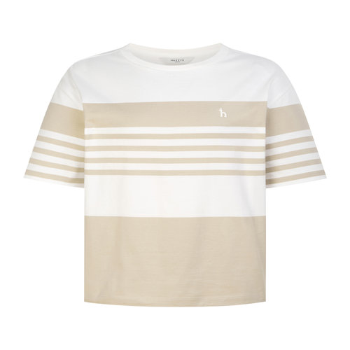 헤지스 골프 여성 [ONLINE EXCLUSIVE] 베이지 여성 스트라이프 라운드넥 반팔 티셔츠 (HWTS6B903I4)