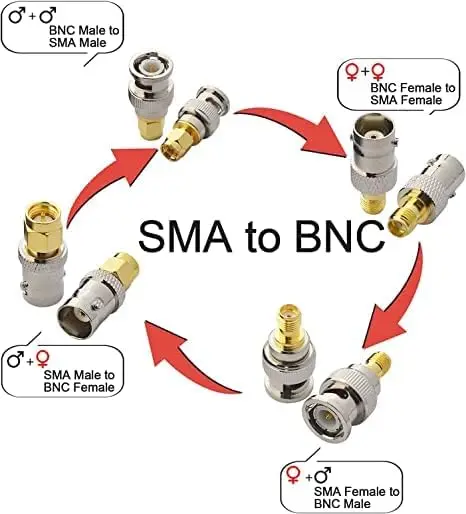 SDR, GMRS 핸드헬드 무전기, 스캐너, 워키토키 어댑터용 SMA-BNC 어댑터 (SMA Male-Female - BNC Male-Female RF 동축)