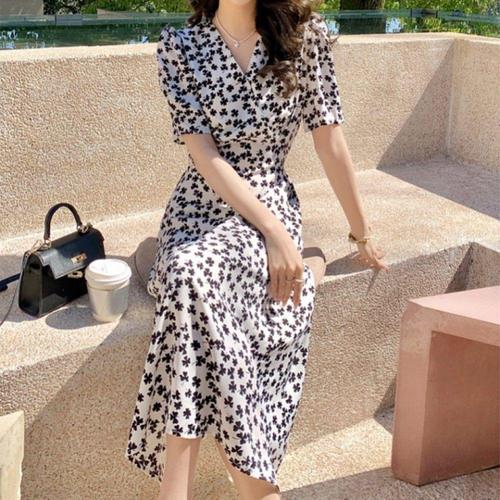 [오너클랜]인기상품 브이넥 허리 스트링 랩 스타일 롱 반팔 원피스 [WFLKZSL_260304]