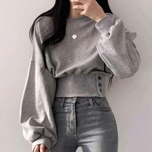 [에이치플러스몰]단추 모던 허리핏 숏기장스웨트