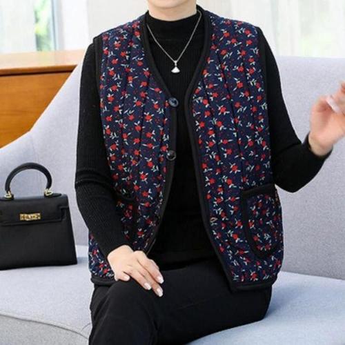 [셀러허브_여성트랜드패션]Rly 여성 부드러운 꽃무늬 방한 조끼 촌캉스 할머니