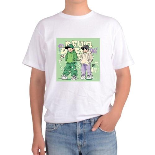 2025 신상 여름 남성 티셔츠 마이요 90분 토토 & 니네타 양면 프린트 반팔 오버사이즈 통기성 속건 탑