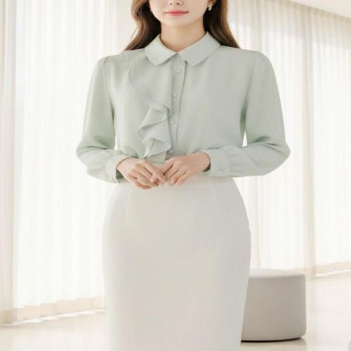 [헤레이스]프릴 바이어스 블라우스_YMSH26SS004
