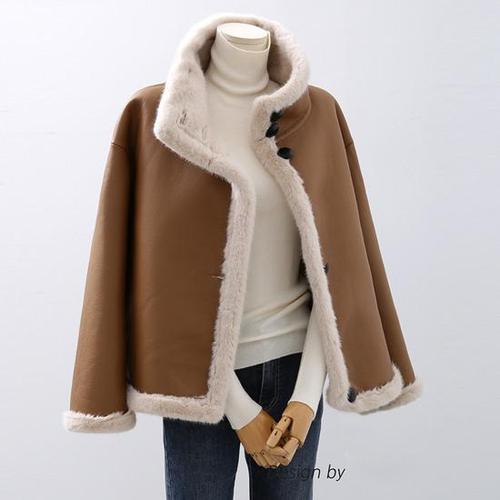 [헤레이스](카라리얼폭스퍼)(아이보리진행)무스탕코트_YMSH23FW768