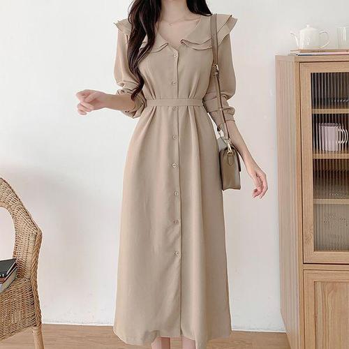 [미니멈]카라넥 버튼 플레어 원피스 (MXDAWO0150 MB1)_IC