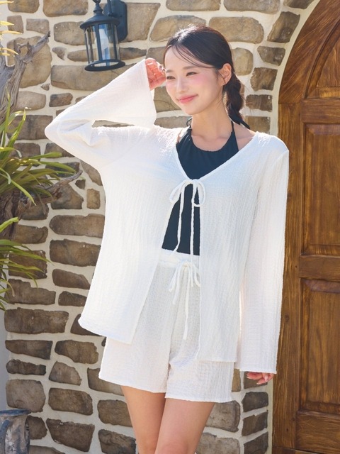 [헤링본] 세라 여름 크롭 시스루 골지 가디건 원피스 커버업 / SG147