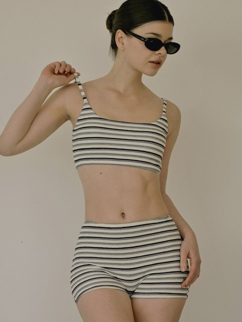 [헤링본] 테리 스트라이프 하이웨스트 비키니 세트 / CJ102