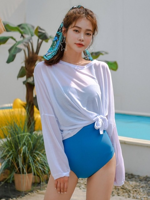 [헤링본] 시스루 긴팔 수영복 비키니 커버업 루즈핏 티셔츠 / SD129