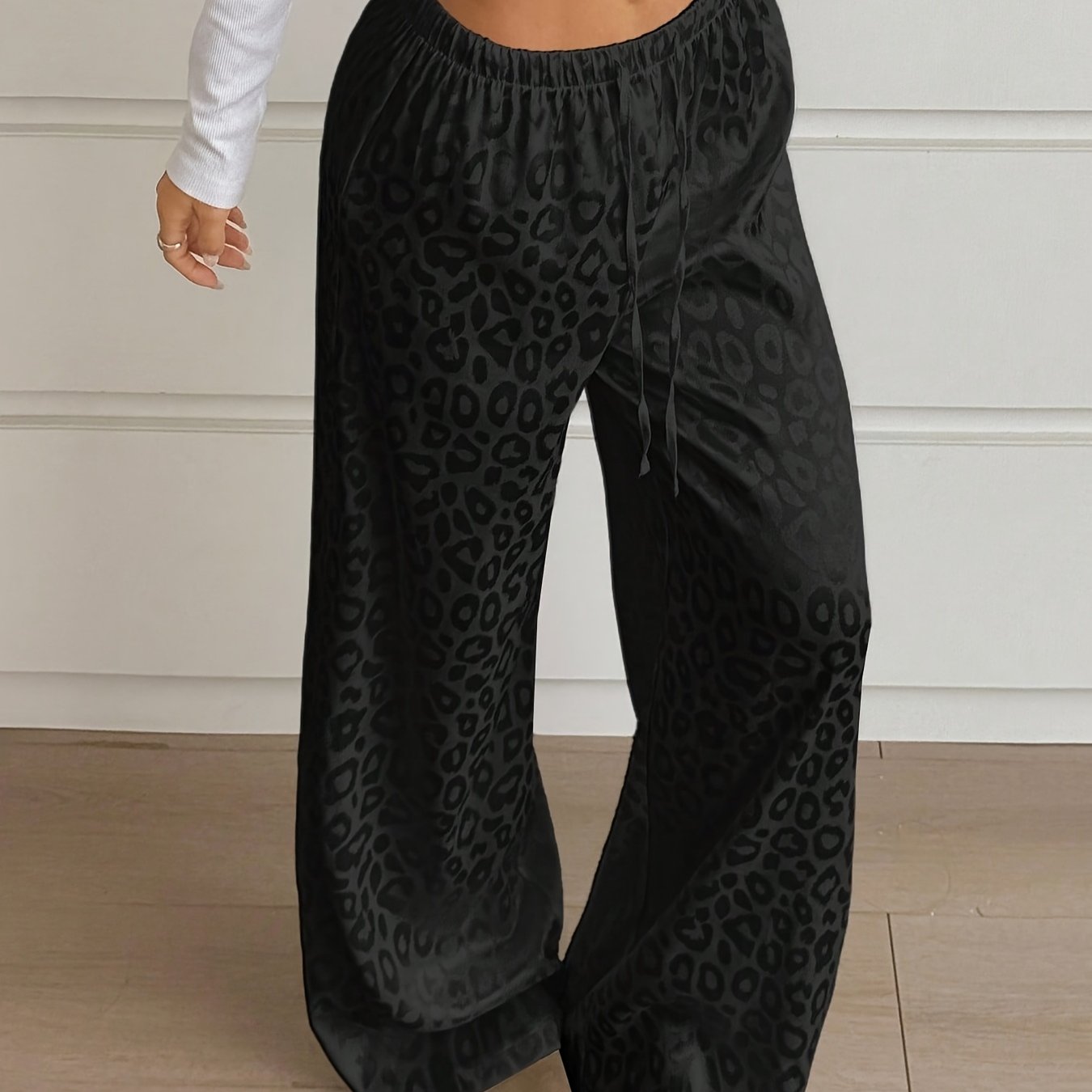 TEMU 여성 캐주얼 블랙 프린트 하이웨스트 루즈 와이드 레그 팬츠