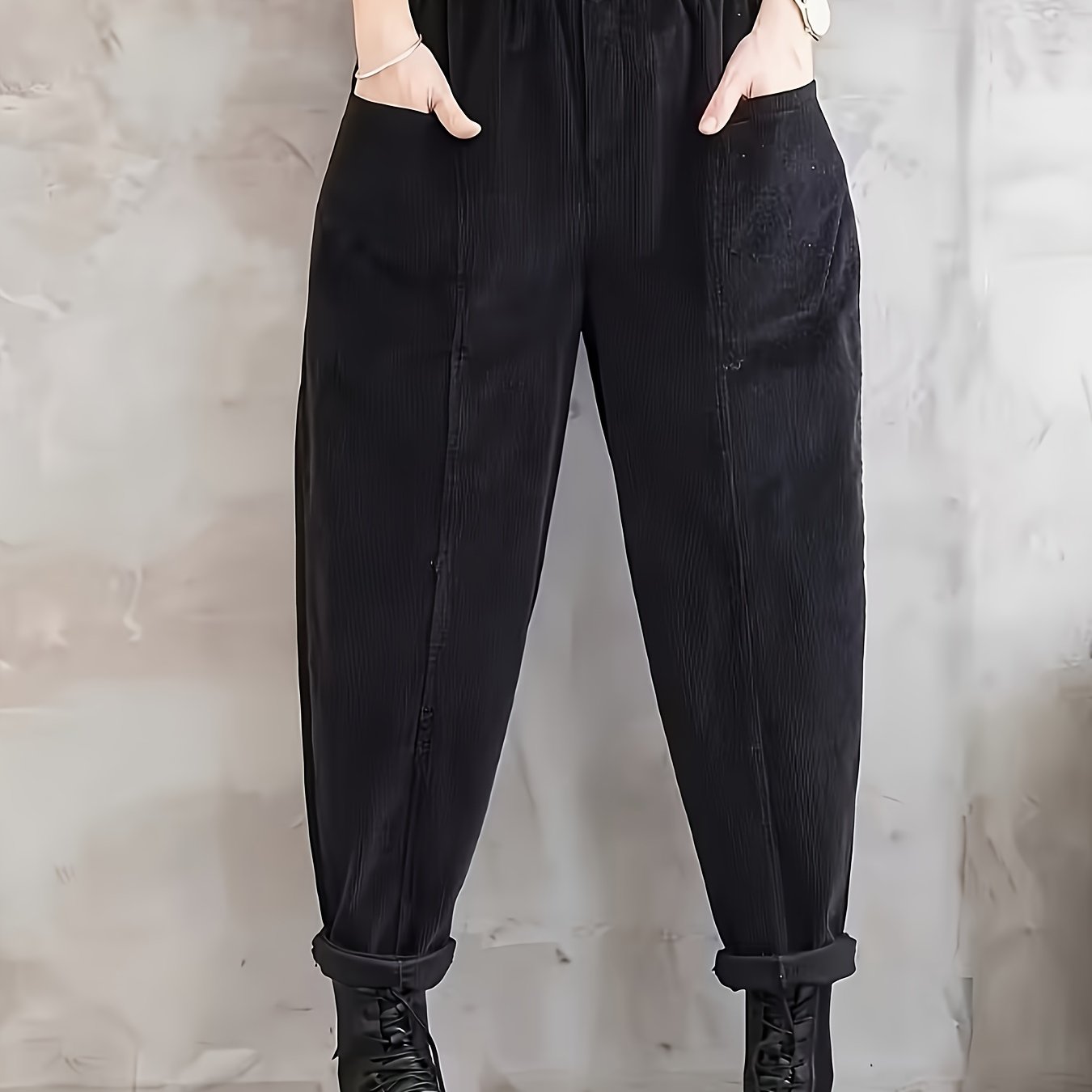 TEMU 플러스 사이즈 - 플러스 사이즈 - 여성용 우아한 와이드 레그 코듀로이 하렘 팬츠 - 포켓이 있는 테이퍼드 디자인, 연중 캐주얼 및 포멀한 모든 행사에 적합