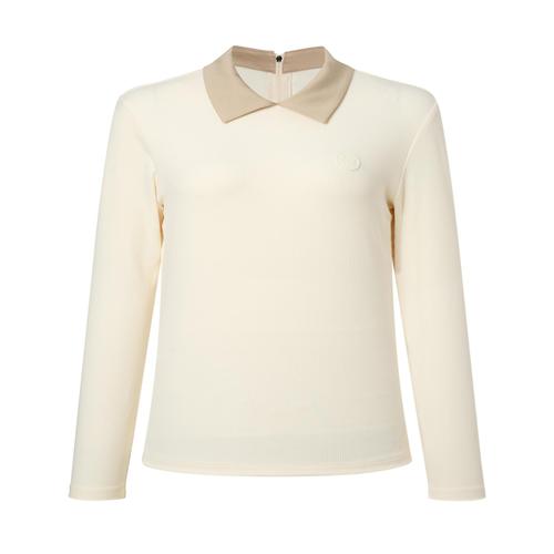 헤지스 골프 여성 [ONLINE EXCLUSIVE] 크림 여성 카라 배색 긴팔 골지 티셔츠 (HWTS4C921CR)