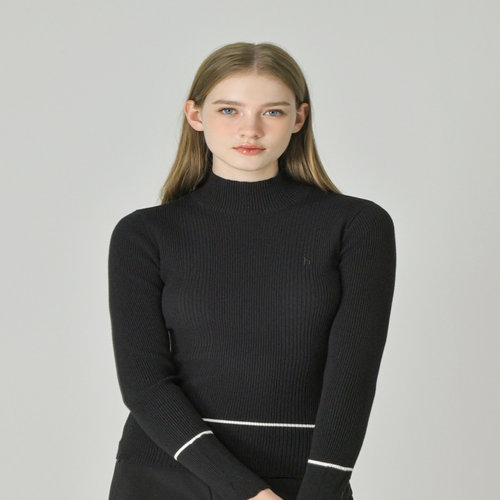 헤지스 골프 여성 [ONLINE EXCLUSIVE] 블랙 여성 원 라인 포인트 하이넥 니트 (HWSW5C901BK)