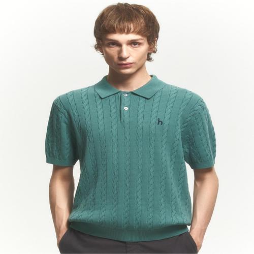 헤지스 남성 [스테디셀러]그린 짜임 면 반팔카라니트 (WHSW4C101E1)