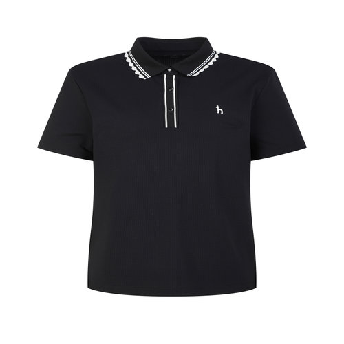 헤지스 골프 여성 블랙 여성 스캘럽 니트 카라 5부 티셔츠 (HWTS6B315BK)